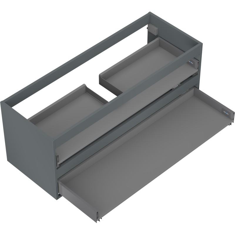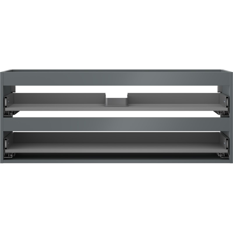 Špecifikácia produktu: Šírka: 120 cm Hĺbka: 44,2 cm Výška: 47 cm Farba: Matný grafit Typ: Závesné Materiál: Lakovaná doska Počet zásuviek: 2 Vodítka s funkciou tlmeného dovierania Plný výsuv pre ľahký prístup k obsahu zásuvky Povrch odolný voči UV žiareniu Kombinovateľný