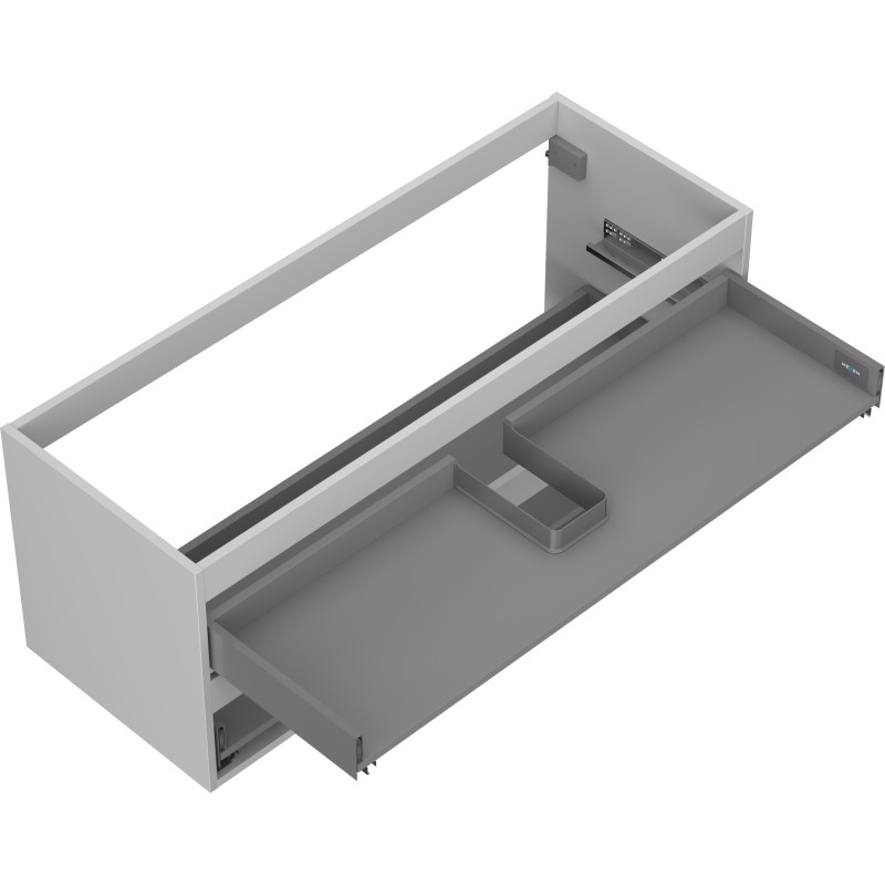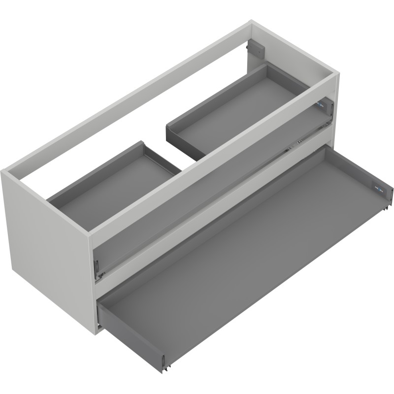 Špecifikácia produktu: Šírka: 120 cm Hĺbka: 44,2 cm Výška: 47 cm Farba: Matne šedá Typ: Závesné Materiál: Lakovaná doska Počet zásuviek: 2 Vodítka s funkciou tlmeného dovierania Plný výsuv pre ľahký prístup k obsahu zásuvky Povrch odolný voči UV žiareniu Kombinovateľný s d