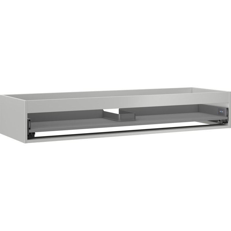 Špecifikácia produktu: Šírka: 140 cm Hĺbka: 44,2 cm Výška: 23,5 cm Farba: Matne šedá Typ: Závesné Materiál: Lakovaná doska Počet zásuviek: 1 Vodítka s funkciou tlmeného dovierania Plný výsuv pre ľahký prístup k obsahu zásuvky Povrch odolný voči UV žiareniu Kombinovateľný