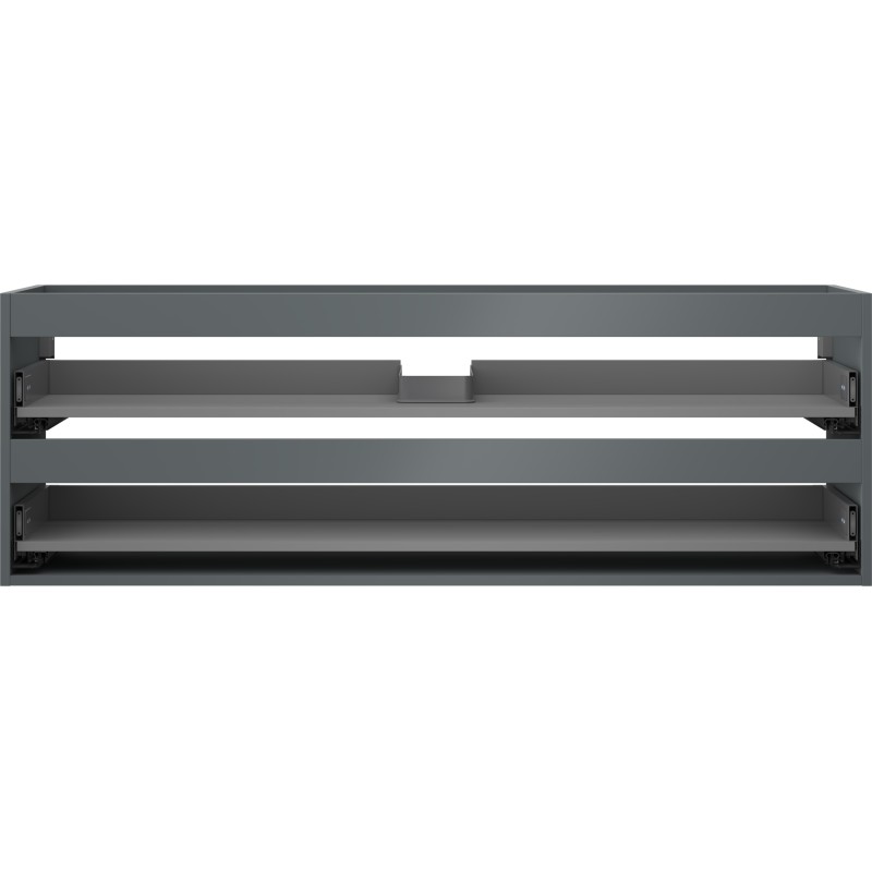Špecifikácia produktu: Šírka: 140 cm Hĺbka: 44,2 cm Výška: 47 cm Farba: Matný grafit Typ: Závesné Materiál: Lakovaná doska Počet zásuviek: 2 Vodítka s funkciou tlmeného dovierania Plný výsuv pre ľahký prístup k obsahu zásuvky Povrch odolný voči UV žiareniu Kombinovateľný
