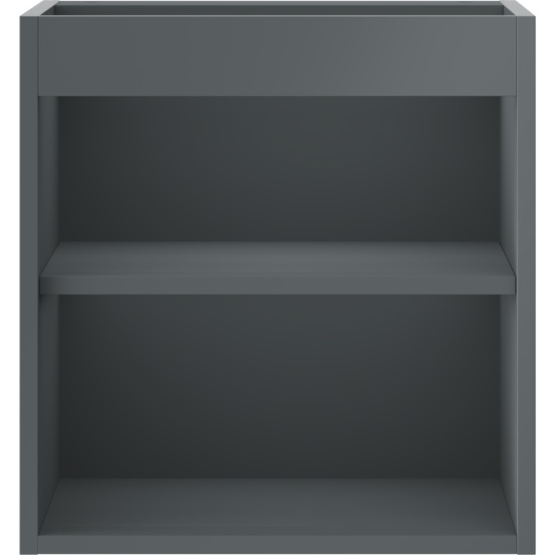 Špecifikácia produktu: Šírka: 45 cm Hĺbka: 44,2 cm Výška: 47 cm Farba: Matný grafit Typ: Závesný Materiál: Lakovaná doska 1 polica Panty s funkciou tlmeného dovierania Univerzálna montáž dvierok (ľavé/pravé) Povrch odolný voči UV žiareniu Produktový s dvierkami Kombinovateľné s dvierkami