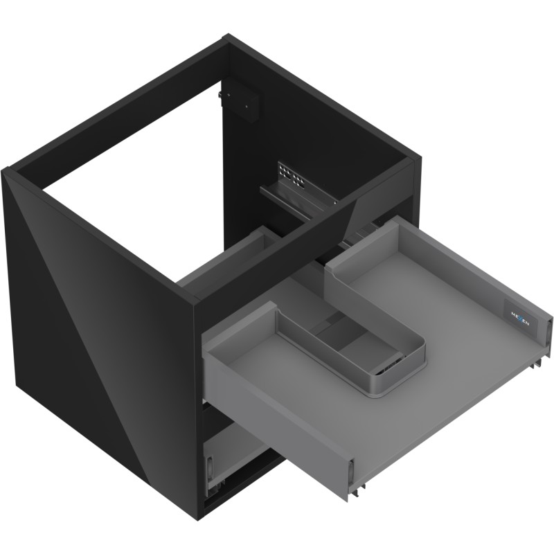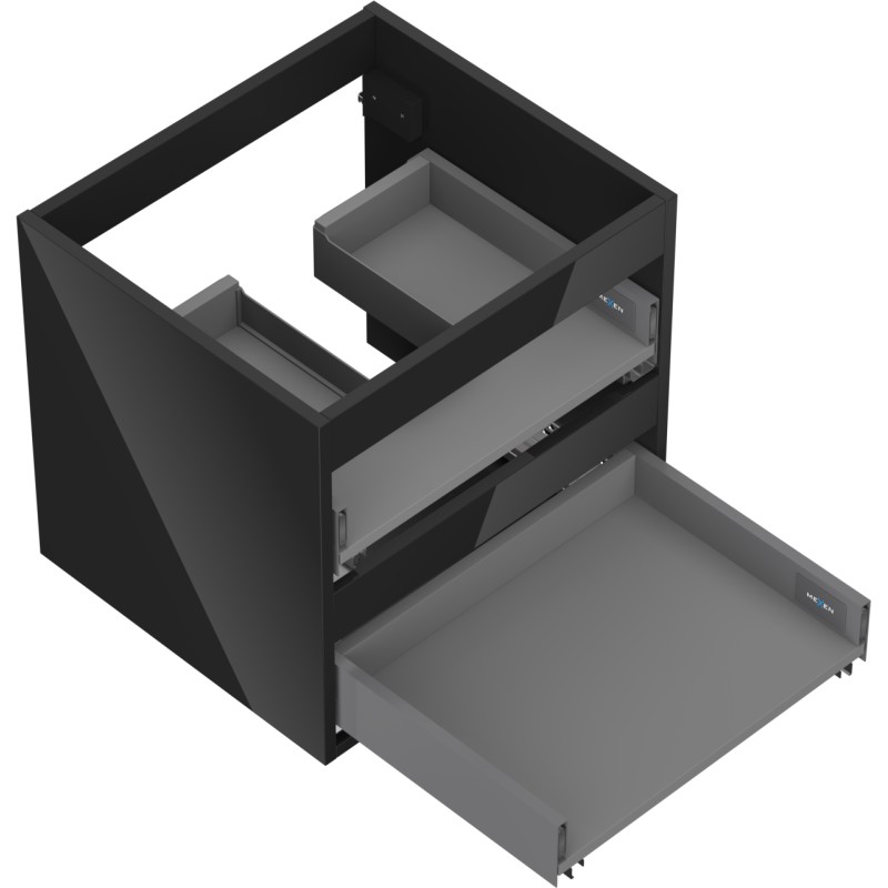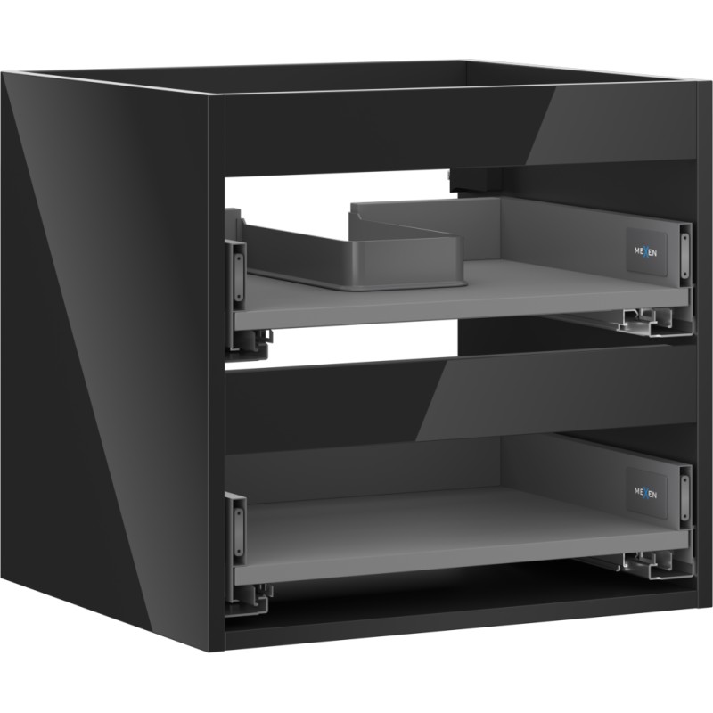 Špecifikácia produktu: Šírka: 50 cm Hĺbka: 44,2 cm Výška: 47 cm Farba: Lesklá čierna Typ: Závesné Materiál: Lakovaná doska Počet zásuviek: 2 Vodítka s funkciou tlmeného dovierania Plný výsuv pre ľahký prístup k obsahu zásuvky Povrch odolný voči UV žiareniu Kombinovateľný s dvierkami
