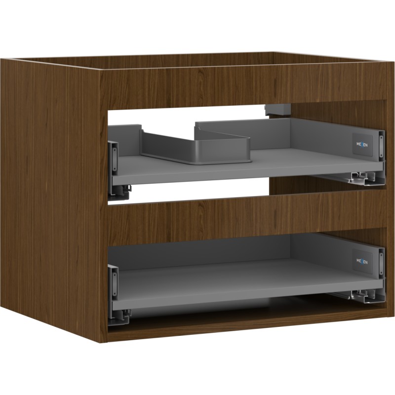 Špecifikácia produktu: Šírka: 60 cm Hĺbka: 44,2 cm Výška: 47 cm Farba: Orech Typ: Závesné Materiál: Kartón + PVC fólia Počet zásuviek: 2 Vodítka s funkciou tlmeného dovierania Plný výsuv pre ľahký prístup k obsahu zásuvky Povrch odolný voči UV žiareniu Kombinovateľný s d