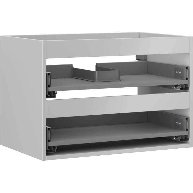 Špecifikácia produktu: Šírka: 70 cm Hĺbka: 44,2 cm Výška: 47 cm Farba: Matne šedá Typ: Závesné Materiál: Lakovaná doska Počet zásuviek: 2 Vodítka s funkciou tlmeného dovierania Plný výsuv pre ľahký prístup k obsahu zásuvky Povrch odolný voči UV žiareniu Kombinovateľný s dvierkami