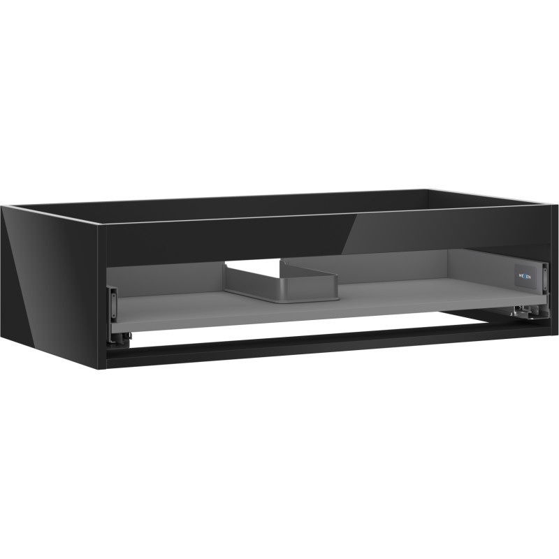Špecifikácia produktu: Šírka: 90 cm Hĺbka: 44,2 cm Výška: 23,5 cm Farba: Lesklá čierna Typ: Závesné Materiál: Lakovaná doska Počet zásuviek: 1 Vodítka s funkciou tlmeného dovierania Plný výsuv pre ľahký prístup k obsahu zásuvky Povrch odolný voči UV žiareniu Kombinovateľný s d