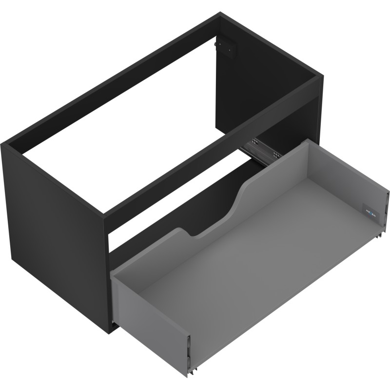 Špecifikácia produktu: Šírka: 90 cm Hĺbka: 44,2 cm Výška: 47 cm Farba: Matná čierna Typ: Závesné Materiál: Lakovaná doska Počet zásuviek: 1 Vodítka s funkciou tlmeného dovierania Plný výsuv pre ľahký prístup k obsahu zásuvky Povrch odolný voči UV žiareniu Kombinovateľný s dvierkami