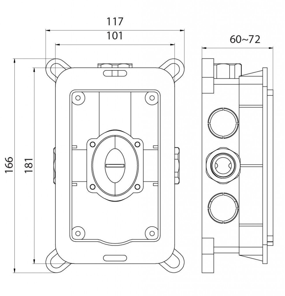 Podomietkový montážny box, ktorý je určený pre podomietkovú sprchovou batérie bez prepínača KUBO-1F-UNO.