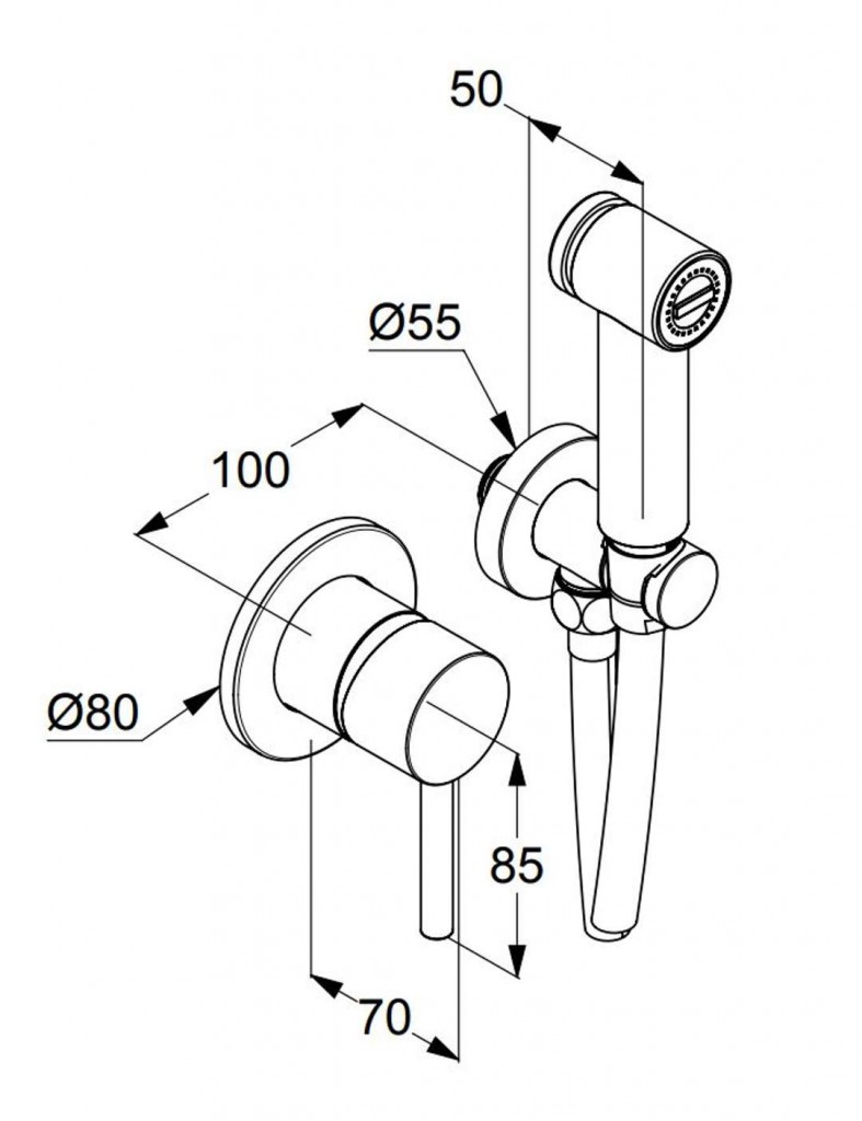 Bidetová podomietková batéria, s telesom a príslušenstvom