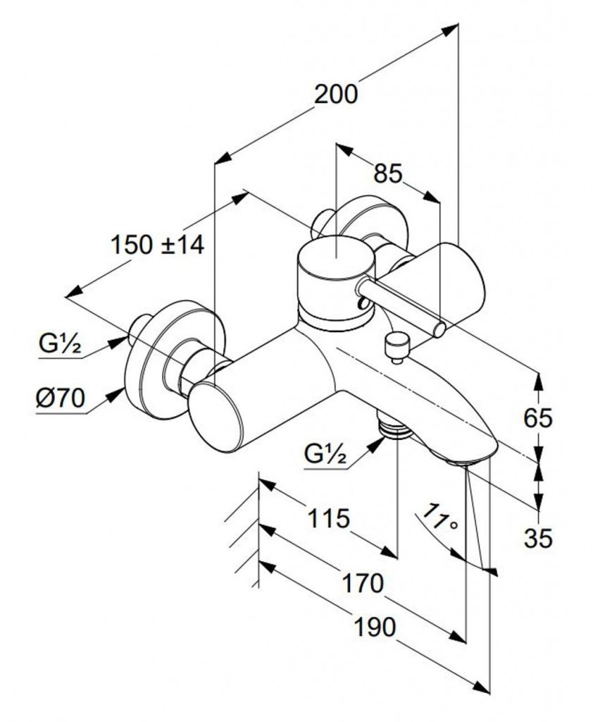 Nástenná vaňová batéria Puristic