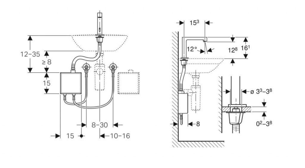- umývadlová armatúra s infračerveným senzorom a hadicou na prívod vody
