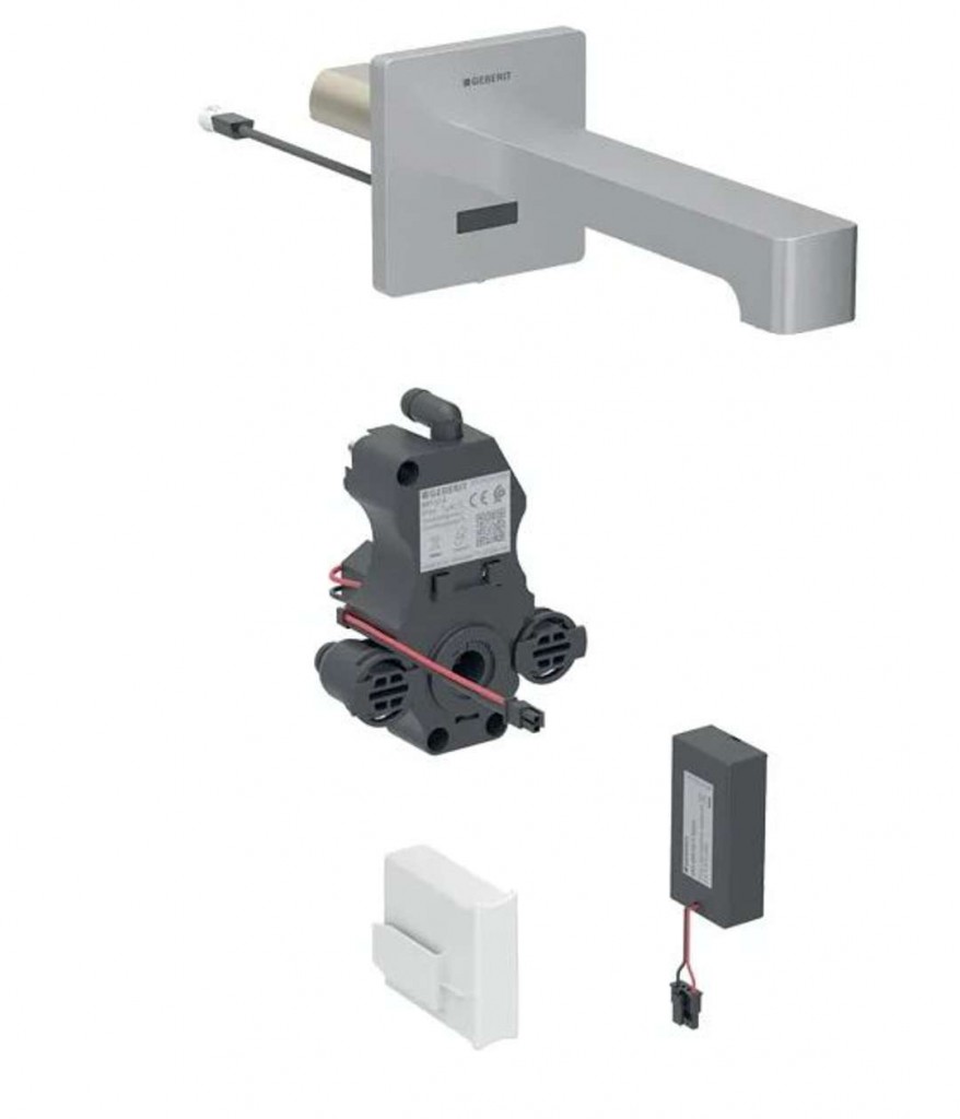 - Na montáž do inštalačných prvkov Geberit pre umývadlo, nástenná armatúra s funkčným boxom pod omietku