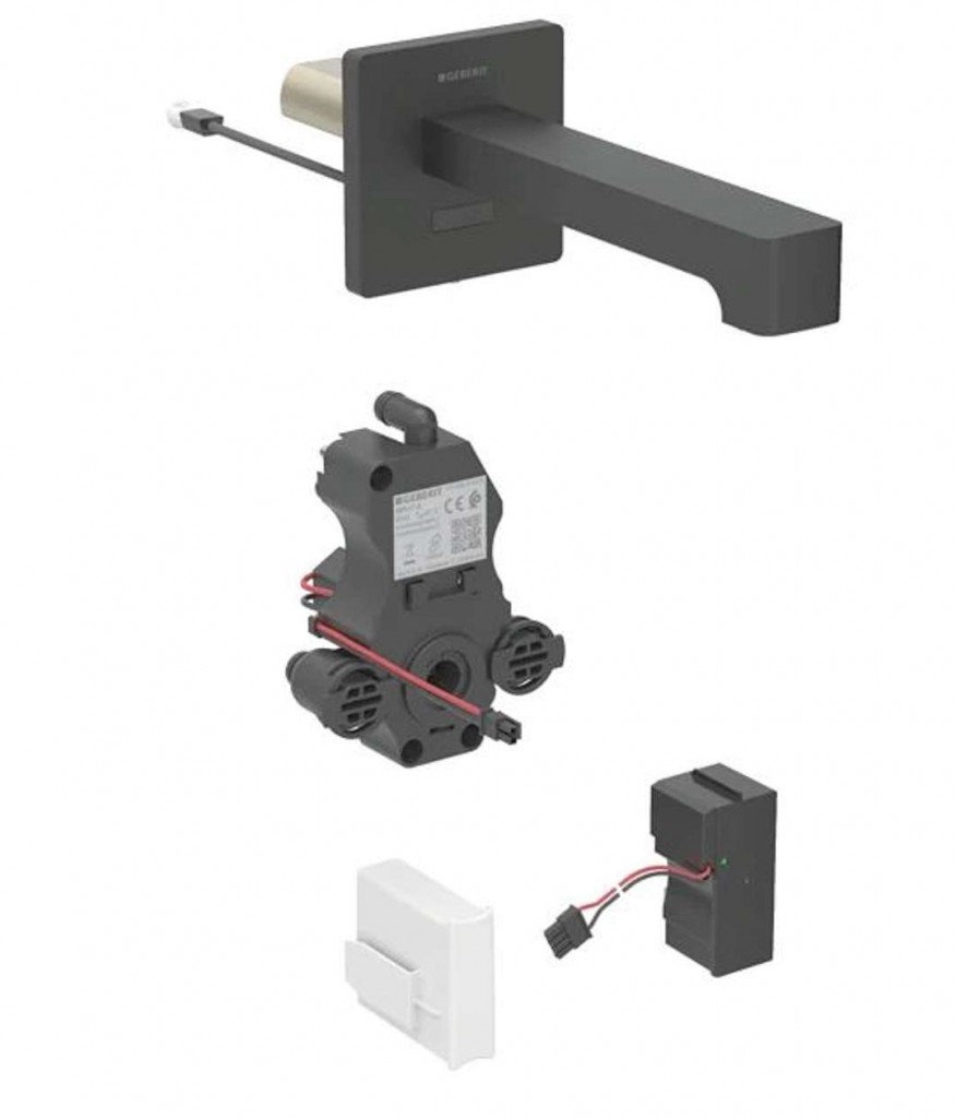 - Na montáž do inštalačných prvkov Geberit pre umývadlo, nástenná armatúra s funkčným boxom pod omietku