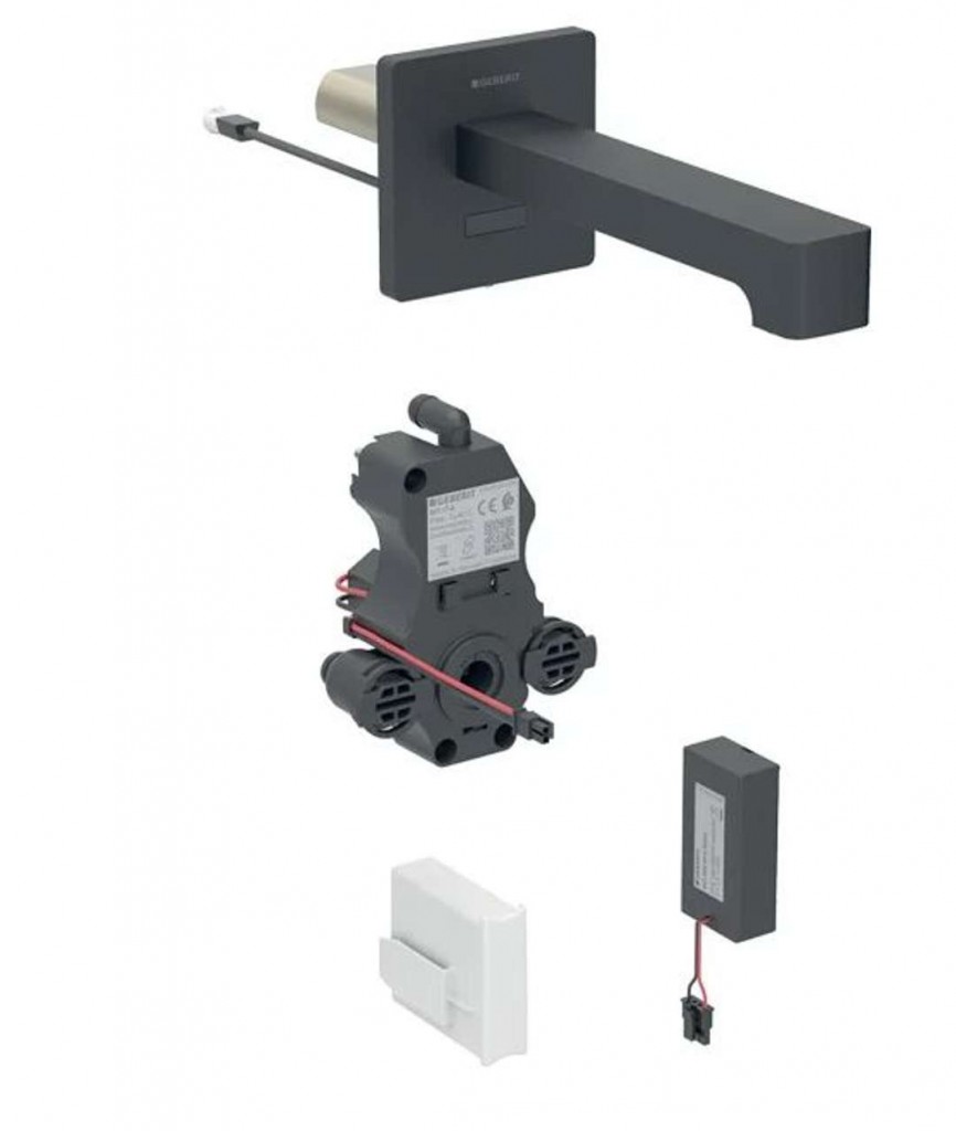 - Na montáž do inštalačných prvkov Geberit pre umývadlo, nástenná armatúra s funkčným boxom pod omietku