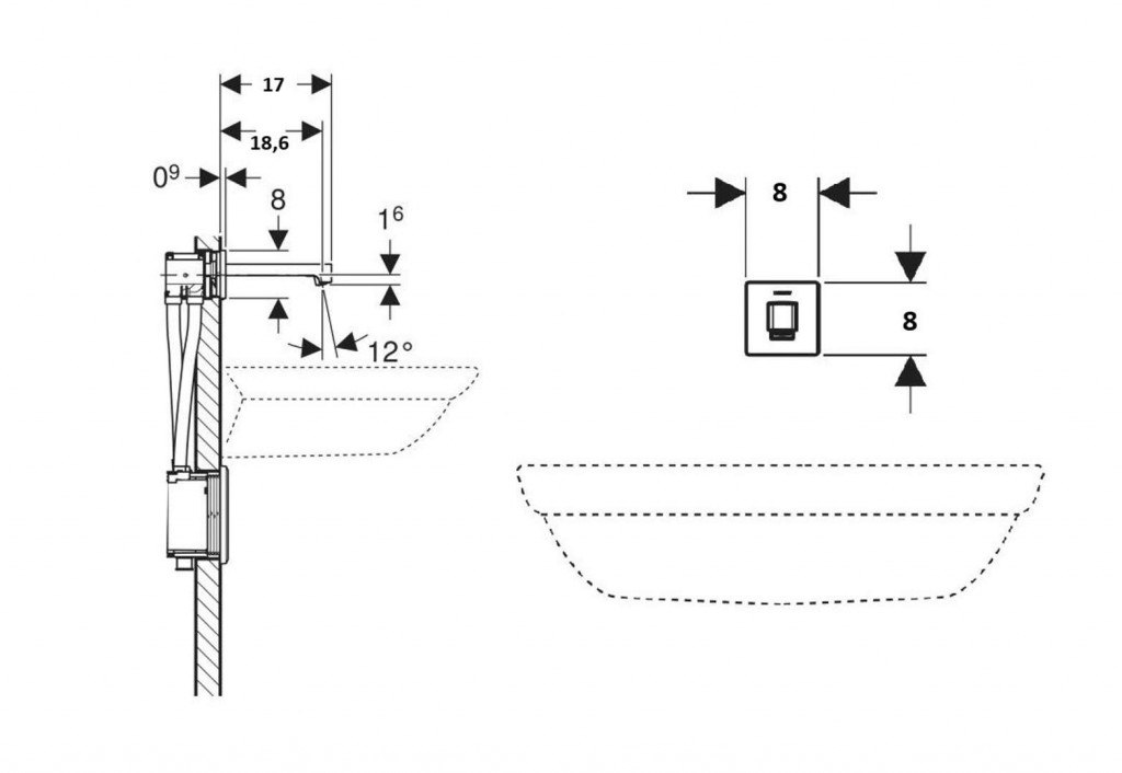 - Na montáž do inštalačných prvkov Geberit pre umývadlo, nástenná armatúra s funkčným boxom pod omietku