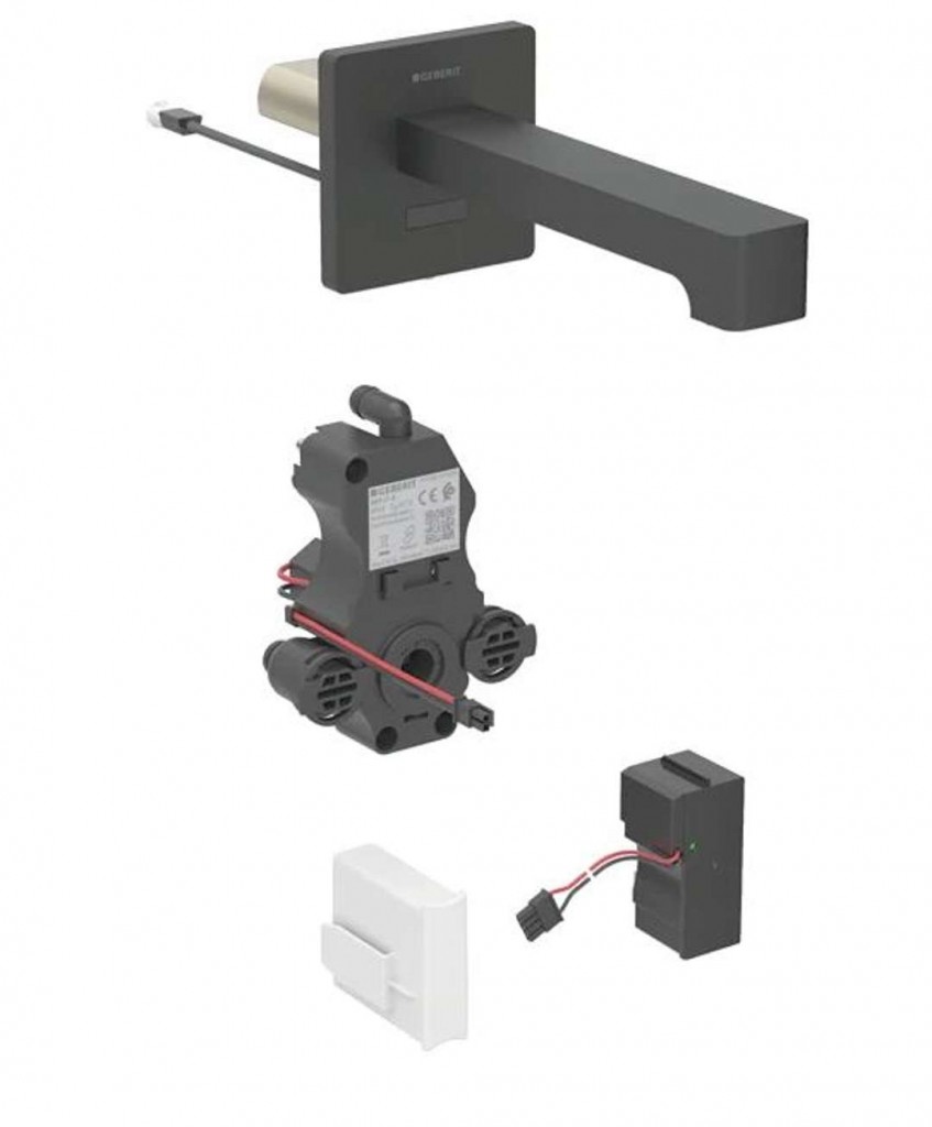 - Na montáž do inštalačných prvkov Geberit pre umývadlo, nástenná armatúra s funkčným boxom pod omietku