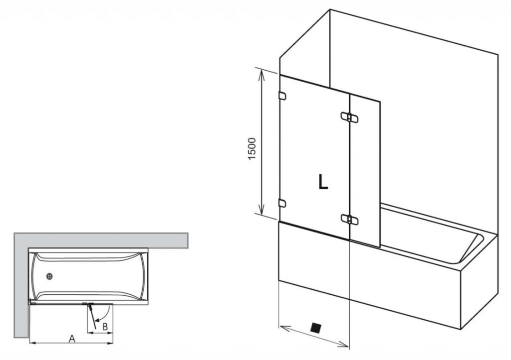 - inštalácie: 1 pevný diel a 1 pohyblivý diel (výklopný), na klasickú obdĺžnikovú vaňu s rovným horným lemom
