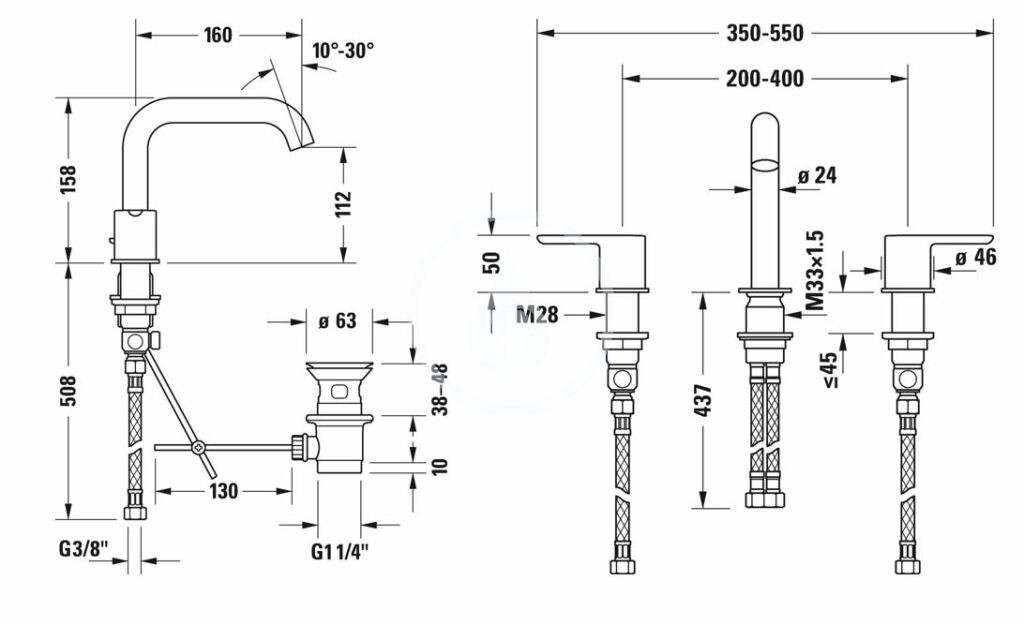3-otvorová umývadlová batéria, s odtokovou súpravou