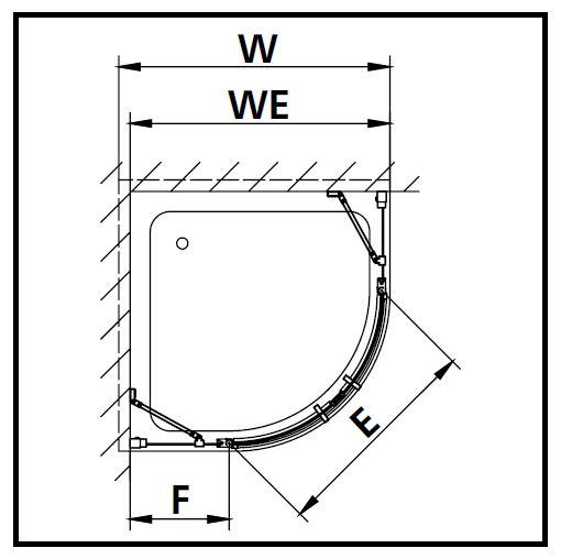 - Čiastočne rámový dvojkrídlový štvrťkruhový sprchovací kút s pevnými poľami, s dverami otváravými dovnútra aj von.