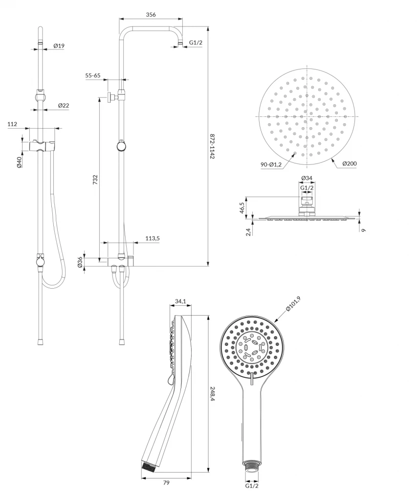 - univerzálny sprchový stĺp na stenu ( UN10041CR ) s prepojeným a ramenom pre montáž hlavovej sprchy sprchy