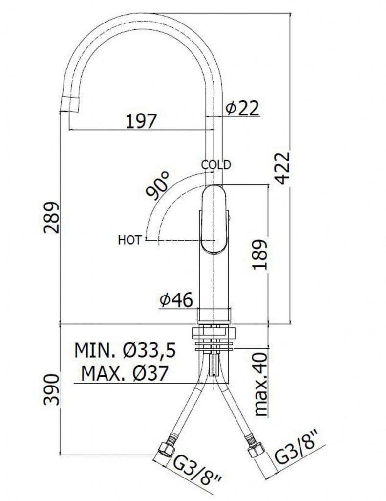 - dĺžka ramienka 197 mm, komfortná zóna 289 mm