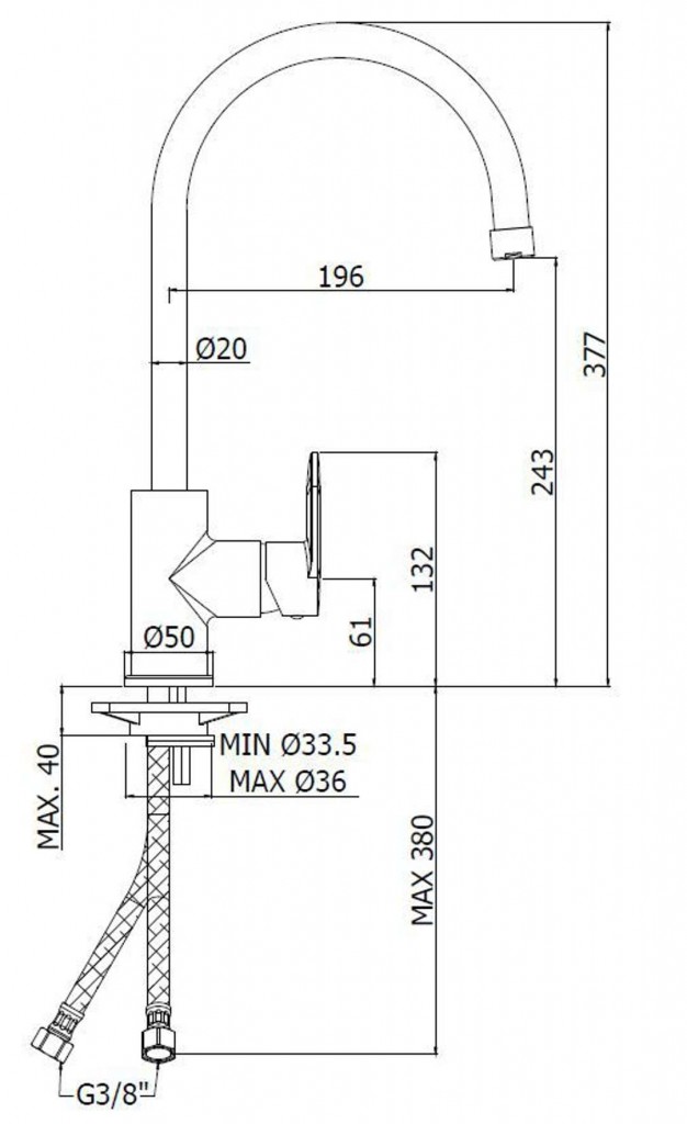 Kuchynská drezová stojanková páková batéria s otočným vysokým ramienkom