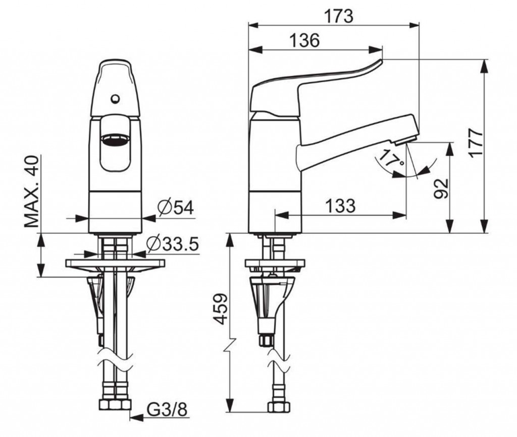 - pripojenie: flexibilné hadice G 3/8