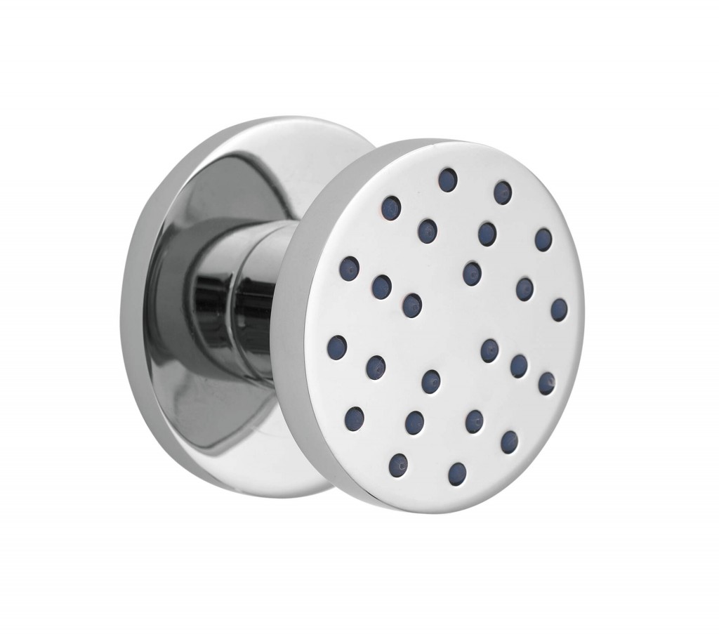 Sprchová tryska pod omietku funguje najlepšie v minimalistických a moderných kúpeľniach. Pôsobí na ne dojmom veľkých priestorov a bezchybného poriadku. Pri menších plochách miestnosti zlepšuje umiestnenie ostatných prvkov kúpeľňového vybavenia. Pomáha tiež udržiavať ju v čistote, pretože je menšia ako tradičná dažďová sprcha. Bez významu nie je ani anti-calc systém, ktorý zabraňuje usadzovaniu vodného kameňa na silikónových vývodoch vody. Sprchová tryska je vyrobená z odolnej mosadze a povrchovo upravená moderným chrómom. Má zaujímavý okrúhly tvar.