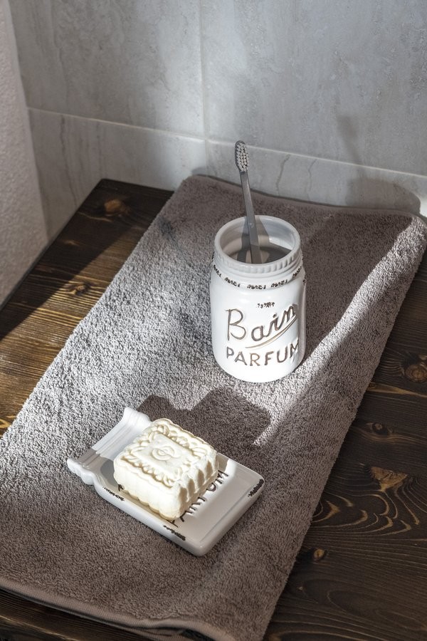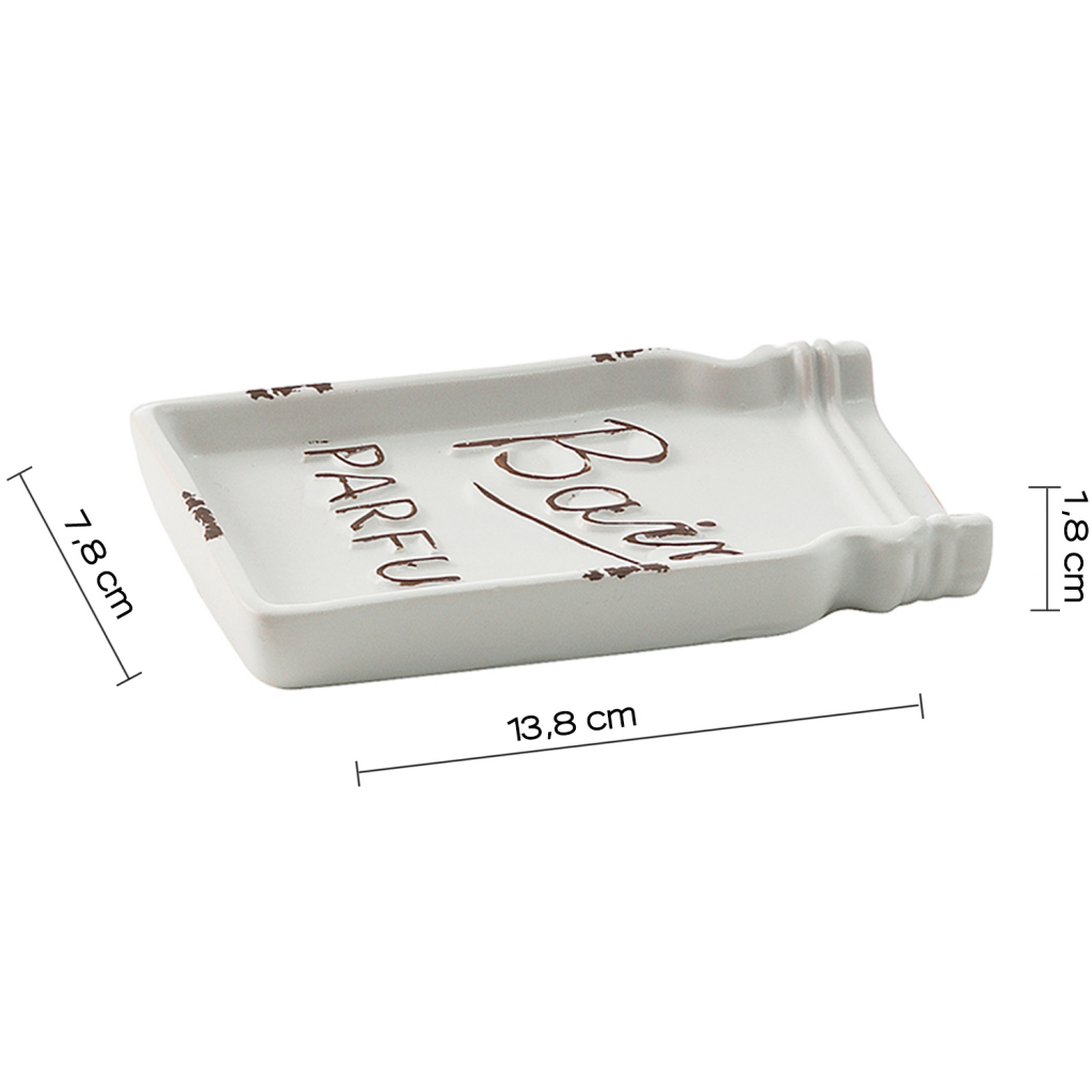 Nápaditý design keramických doplňků CATHERINE kombinující tvar retro sklenice a vzhled kovové bandasky s patřičnou patinou v bílém provedení se hodí do každé retro koupelny.