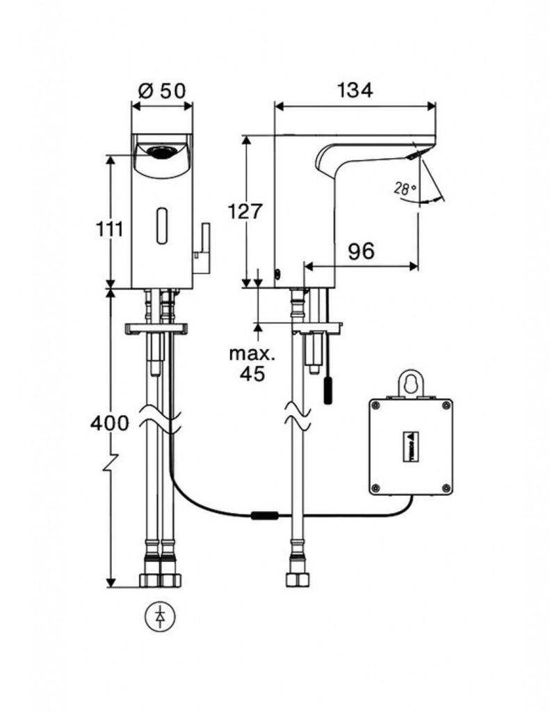 - Jednootvorová bezdotyková armatúra so senzorom Time-of-Flight (ToF)