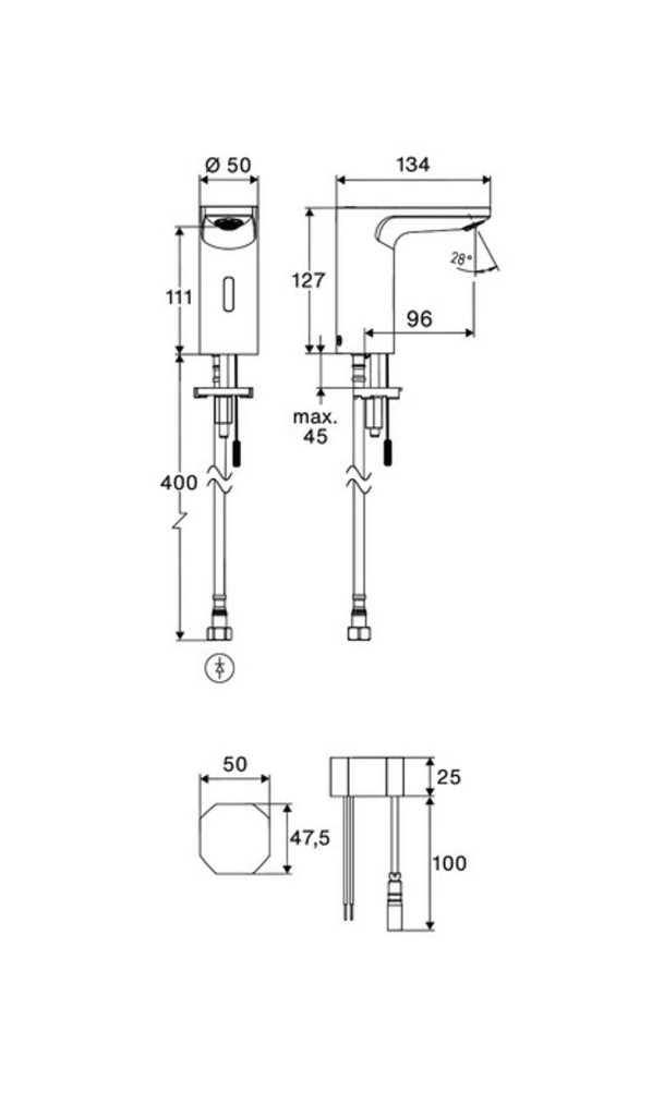 - Jednootvorová bezdotyková armatúra so senzorom Time-of-Flight (ToF)
