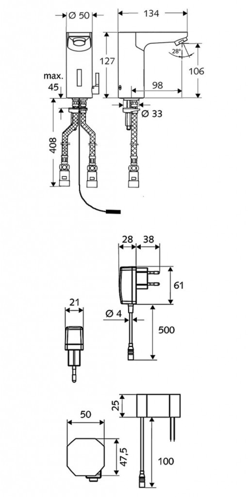 - kábel so zástrčkou 100 - 240 V, 50 - 60 Hz