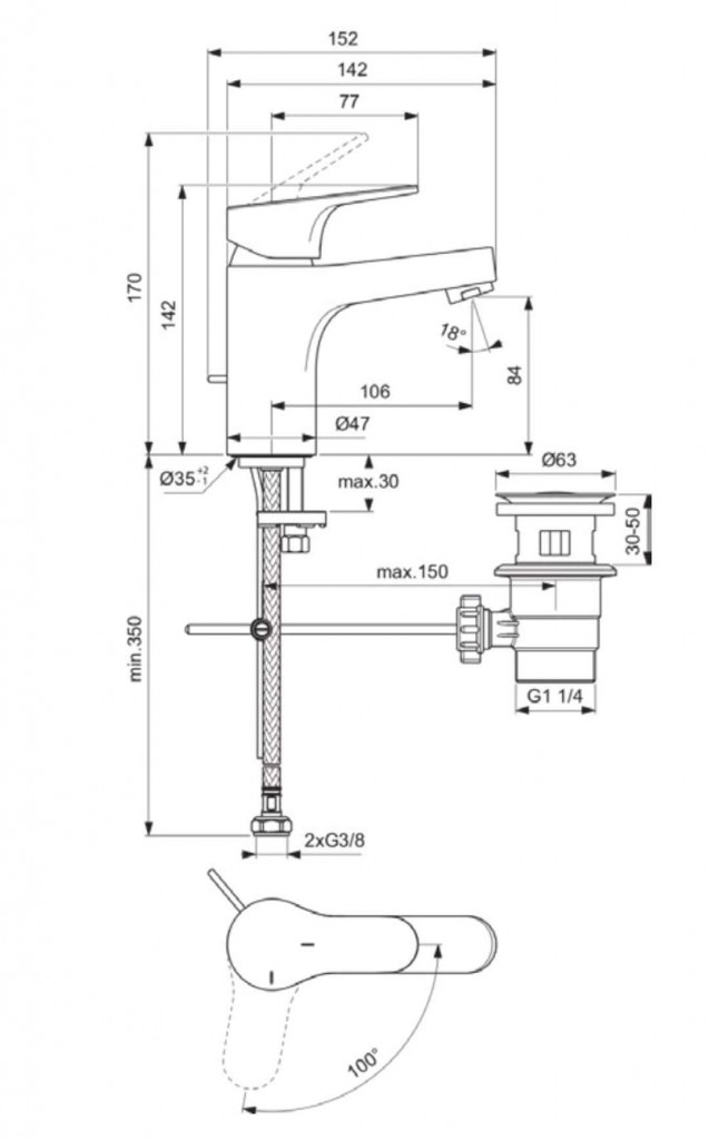 - BlueStart technológia šetrí energiu a vodu, v pozícii páky uprostred preteká studená voda