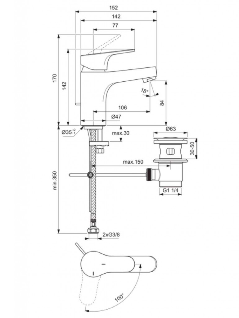 - BlueStart technológia šetrí energiu a vodu, v pozícii páky uprostred preteká studená voda