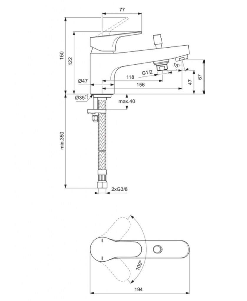 - pevný výtok 156 mm