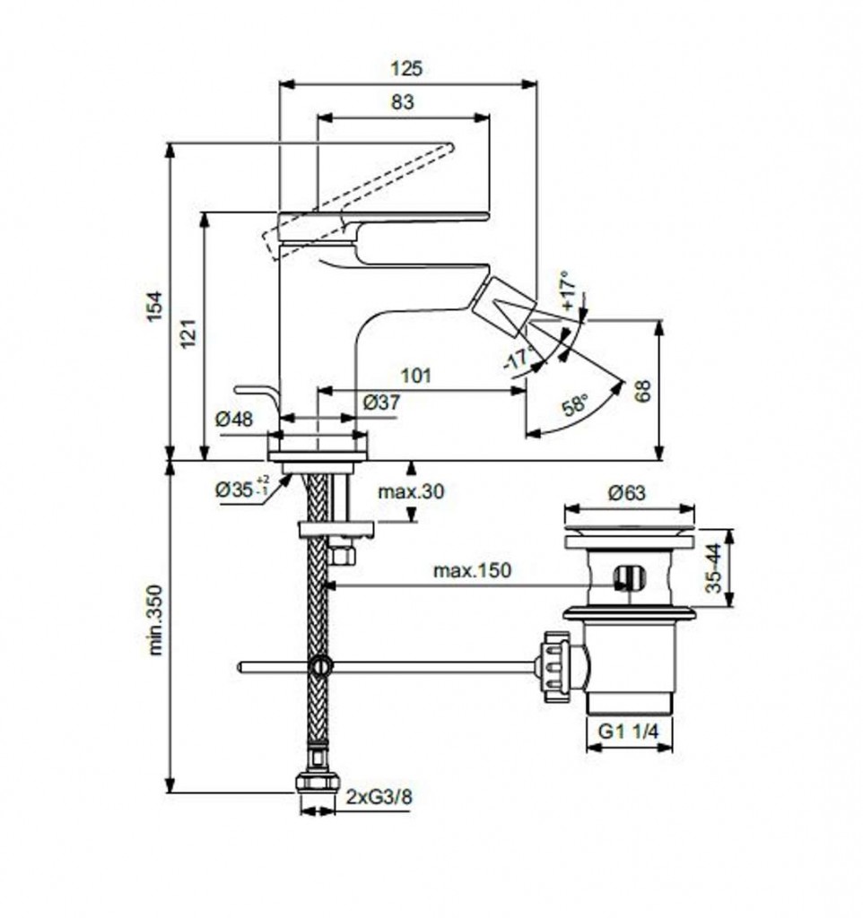 Páková bidetová batéria s výpustou