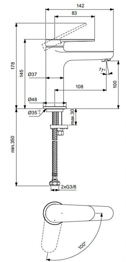 Páková umývadlová batéria H100 BlueStart