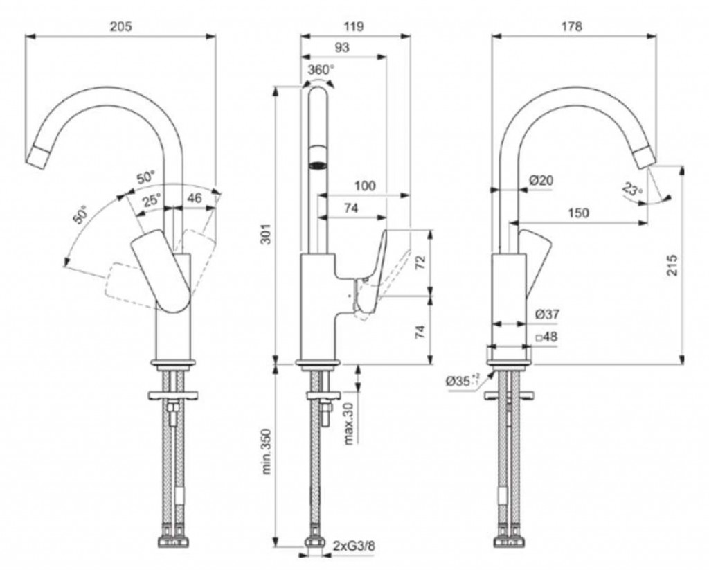 - flexibilná hadica: 2x G3/8"