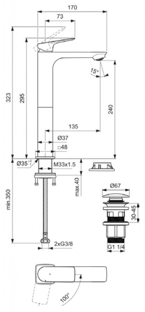 - dĺžka výtoku: 135 mm