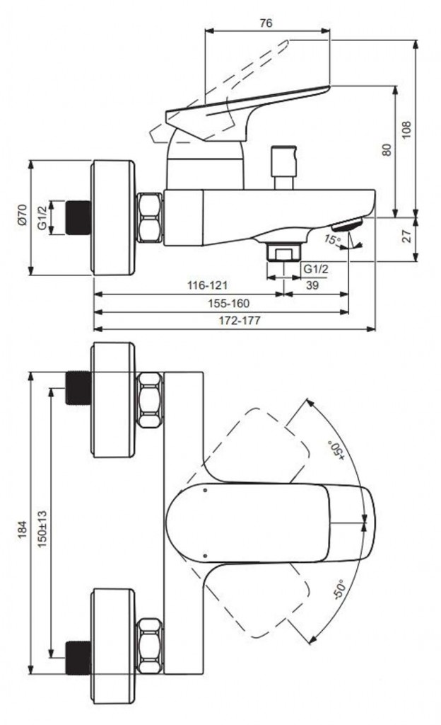 - pákové ovládanie (uhol otočenia 50° do oboch strán) s červeným a modrým indikátorom
