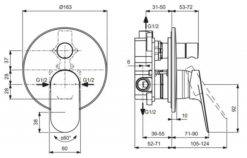 - FirmaFlow keramická kartuša s reguláciou teploty horúcej vody a funkciou Click pre ľahkú reguláciu prúdu vody a úsporu