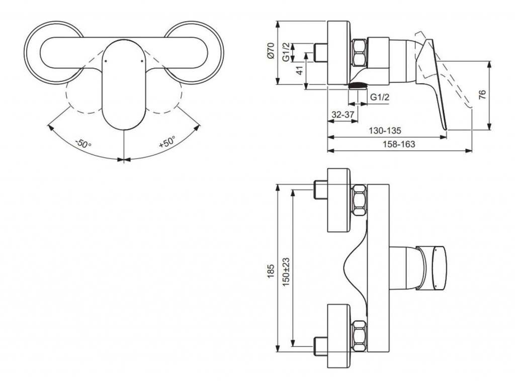- spodný závit na pripojenie sprchovej hadice G1/2