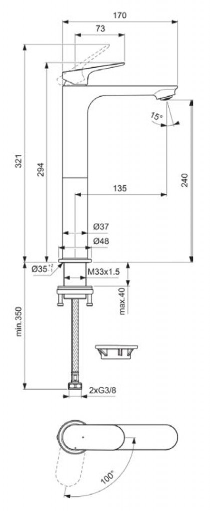 - dĺžka výtoku: 135 mm