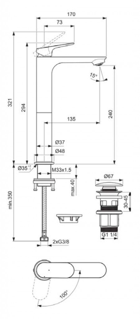 - dĺžka výtoku: 135 mm
