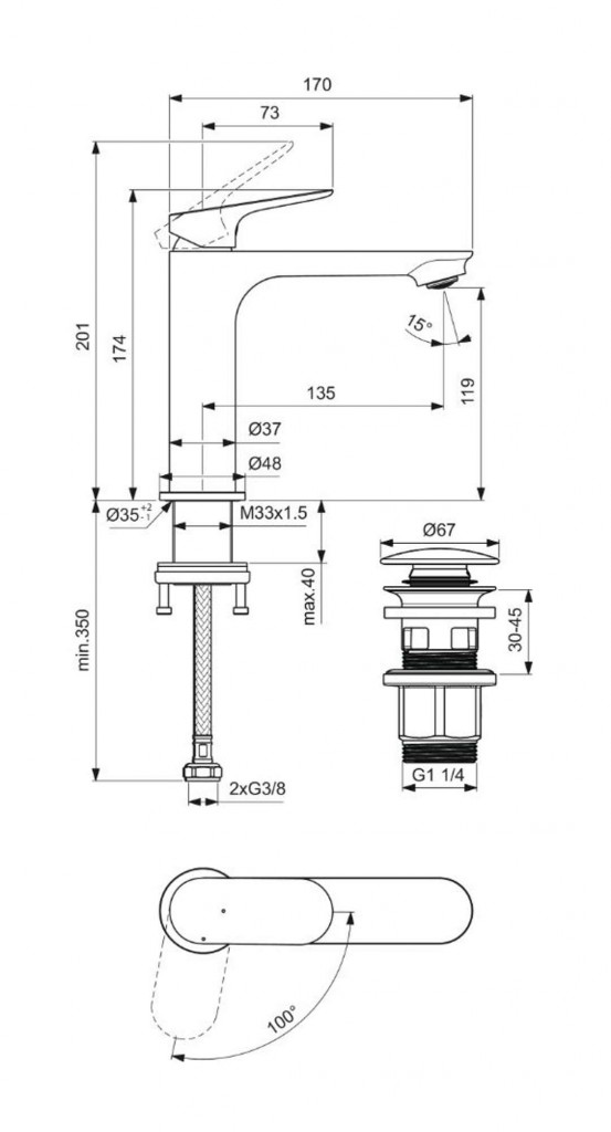 - dĺžka výtoku: 135 mm
