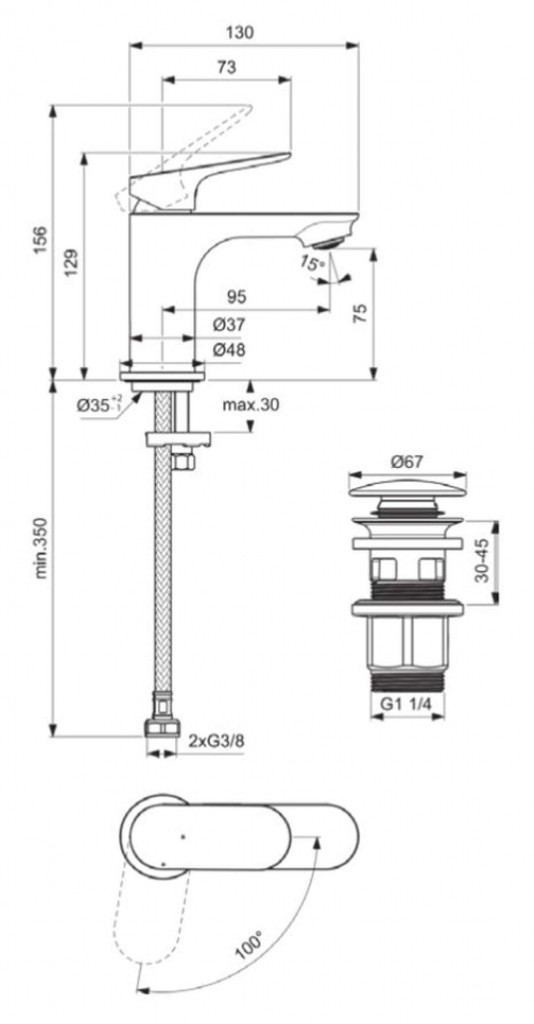 - dĺžka výtoku: 95 mm