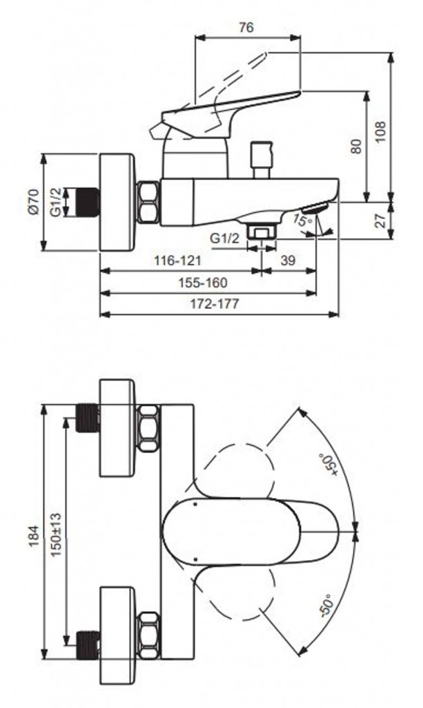 Nástenná vaňová batéria