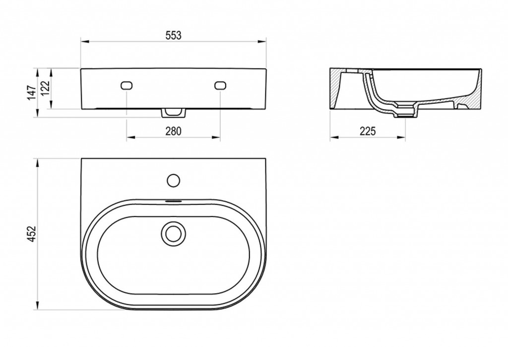 Umývadlo Ceramic Slim Wall O 55 N