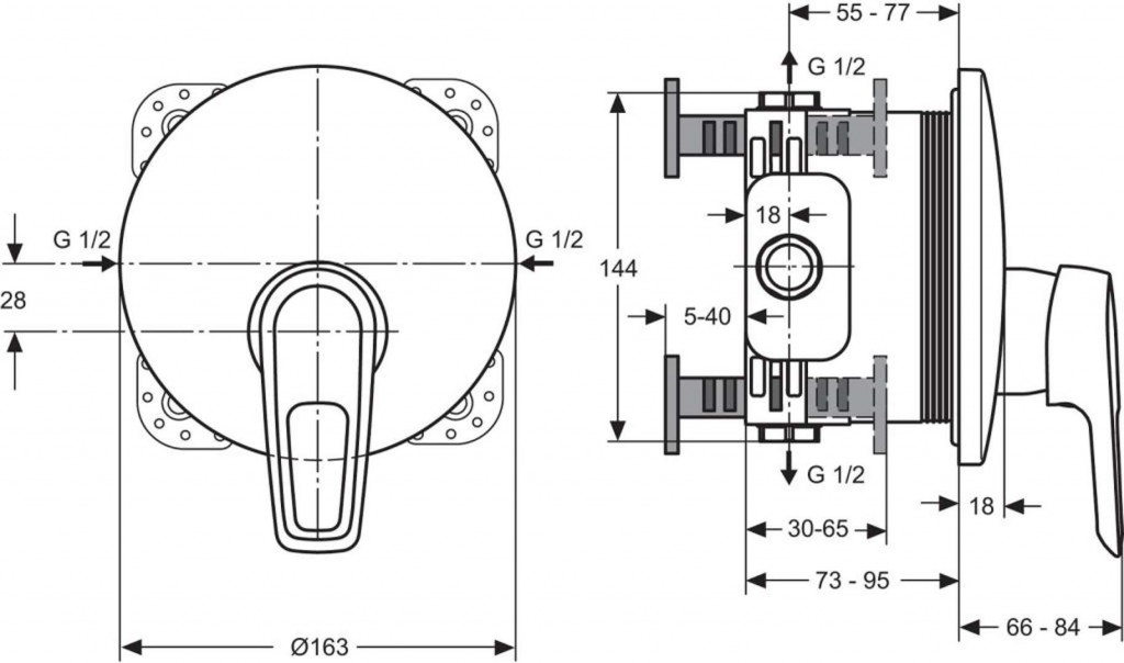 Integrovaný obmedzovač teplej vody s ECO funkciou.