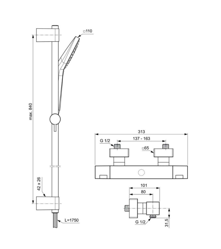 - max. rozstup: 840 mm