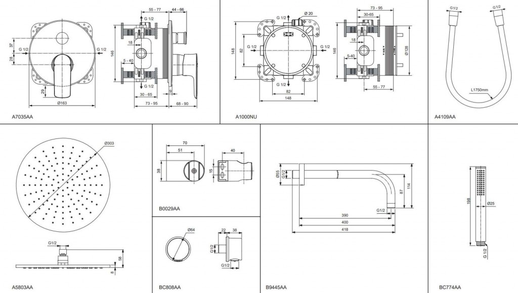 - pripojovací závit a pripojenie do steny G 1/2